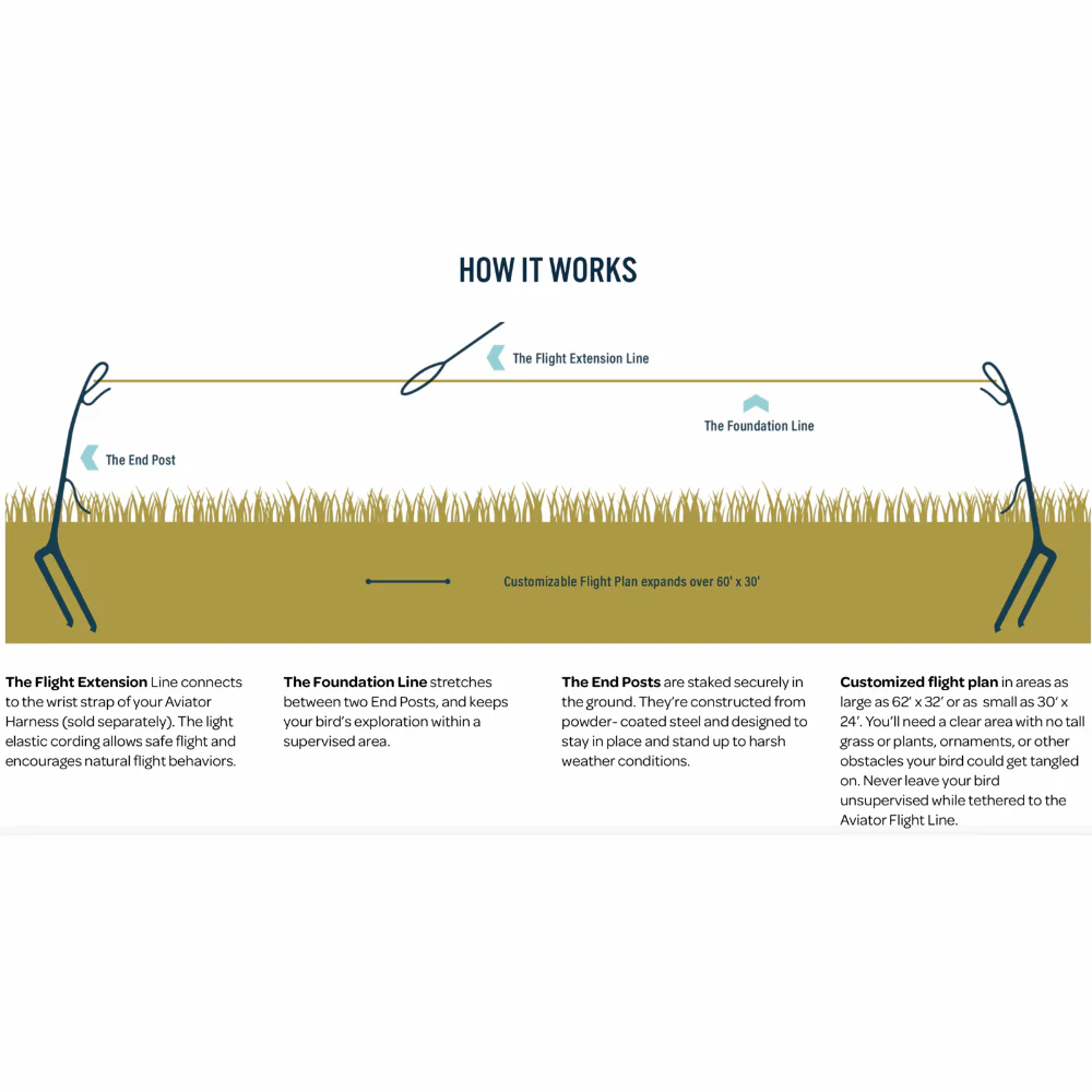 With the Aviator Flight Line, your bird can fly and explore like never before. With the Aviator Flight Line, you’ll be able to work with your bird on advanced skills like recall, agility, and flight confidence.